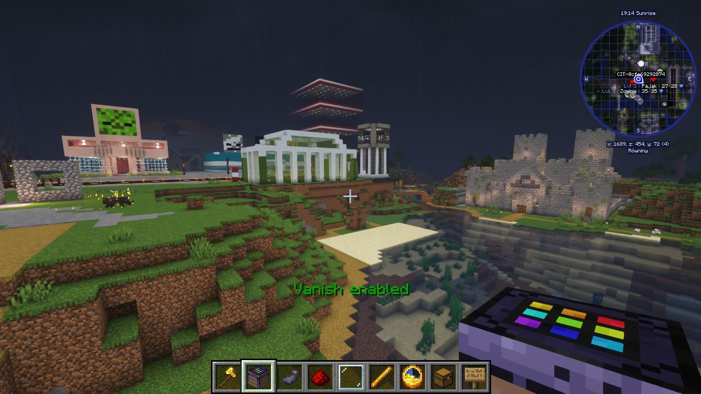 - Shaderpacki - w ustawieniach graficznych możemy włączyć shadery, dzięki którym gra będzie wyglądać jak poniżej (chociażby piękna woda, niebo, cienie). Wymagają one trochę mocniejszego komputera, więc warto przetestować czy u nas będzie to dobrze działać i nie spadną nam FPSy. W paczce modów mamy dwa shaderpacki do przetestowania, ale nic nie stoi na przeszkodzie poszukać sobie samemu w sieci i grać na tych, które u nas działają najlepiej i nam się podobają.
